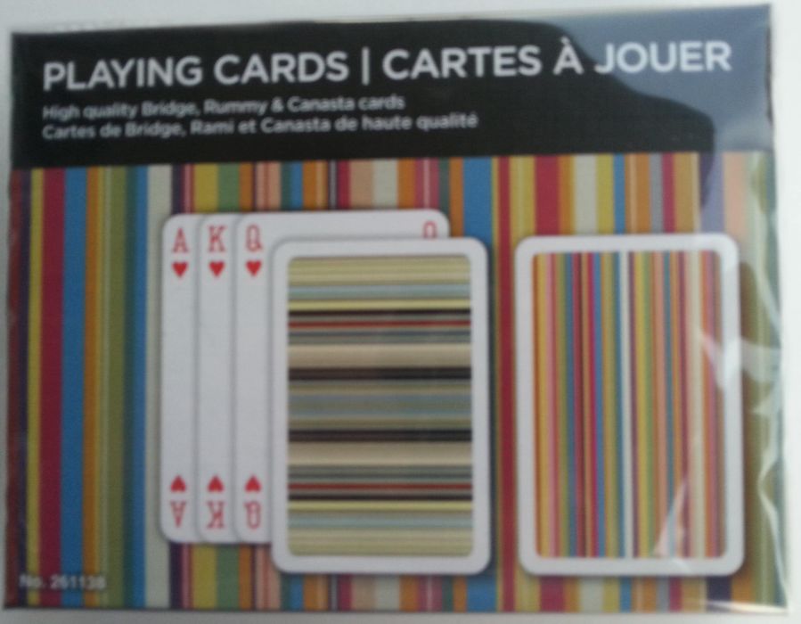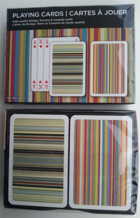 Пакет от двойни игрални карти от Piatnik, включващи цветни ленти в приглушени тонове, напомнящи дизайна на Английският моден диктатор и предприемач Пол Смит. (Репутацията и бизнесът му са изградени на линията му за висша мода за мъже. Смит е световно познат и уважаван в модната индустрия)