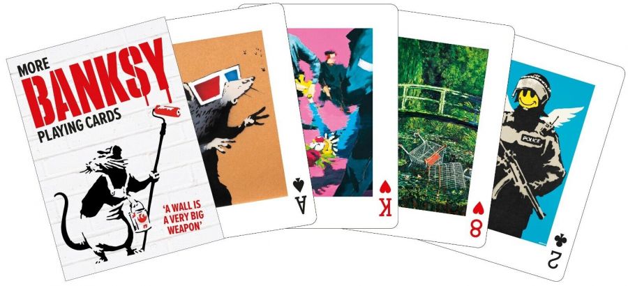 Картите за игра MORE Banksy II Piatnik са идеалният подарък за любителите на уличното изкуство от началото на 90-те години или за колекционери на карти! Banksy е псевдонимът, използван за родения в Бристол Робин Гънингам. Банкси крие истинската си самоличност от широката преса, полицията и последователите си, но това не пречи на различни медии от време на време да публикуват теории за истинската му самоличност.