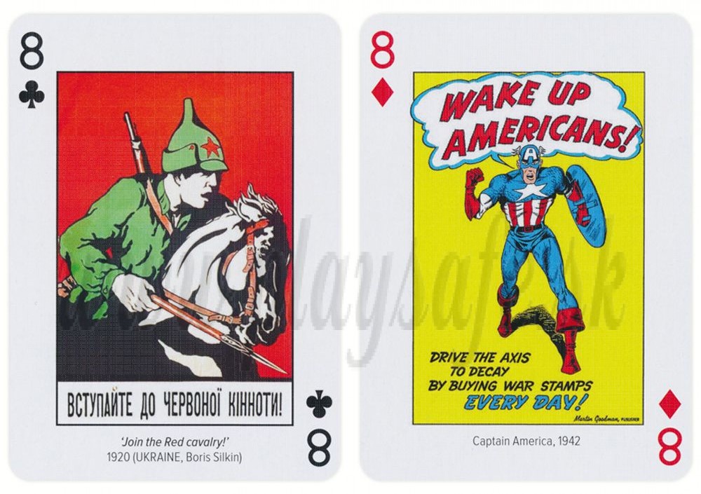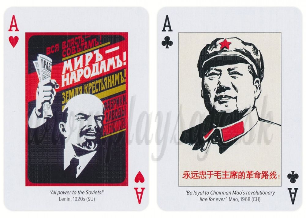 На всяка една карта от тестето, включително и на тези които са с малките номинали са илюстрирани Класически агитационни плакати