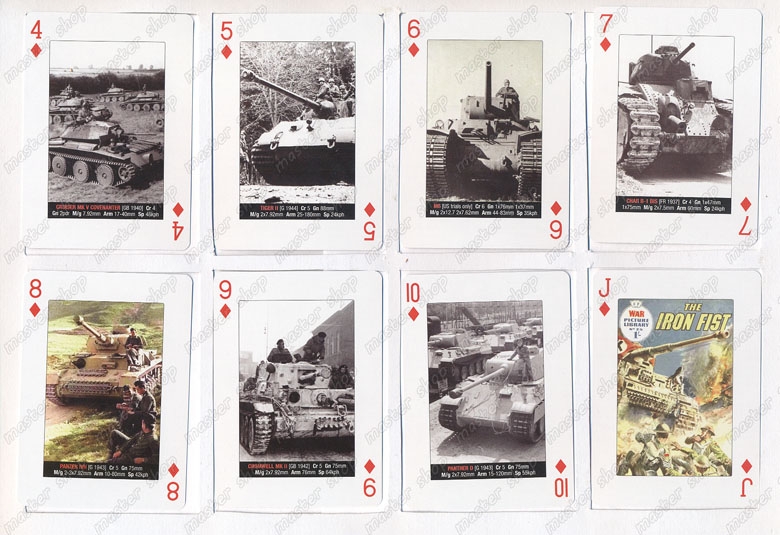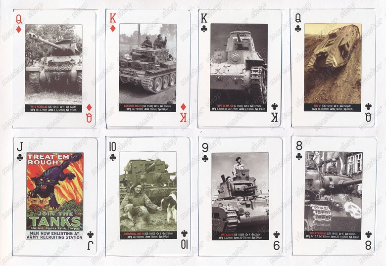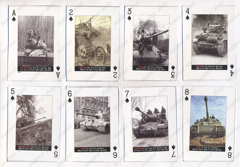 На всяка една карта от тестето, включително и на тези които са с малките номинали са илюстрирани различни модели танкове, които са били на въоръжение в различните държави във всичките военни конфликти от Първата световна война до войната в Корея